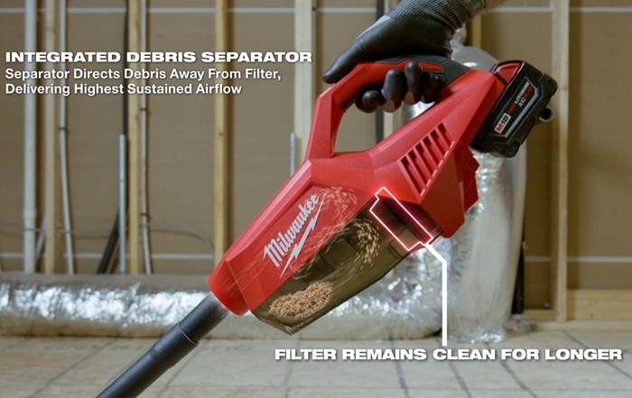 The one drawback with most vacuums is that filter clogging is a thing. Once a filter gets clogged, it reduces suction performance. Though the quick fix is to clean it and then it’s good as new. I like that Milwaukee included a debris separator into the design of this vac. This helps separate debris and direct it away from the filter so that the filter lasts longer before it needs to be cleaned.