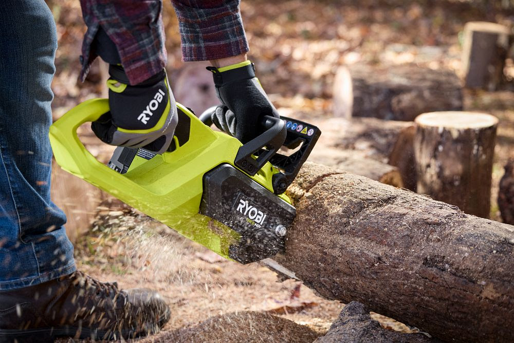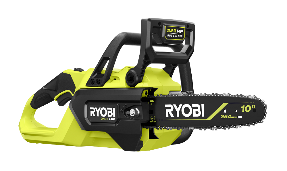 RYOBI introduces the new 18V ONE+ HP Brushless 10″ Chainsaw to its powerful line of ONE+ HP Brushless products. RYOBI ONE+ HP Technology delivers more power, runtime, and durability by utilizing powerful brushless motors, advanced electronics, and high-performance lithium technology.